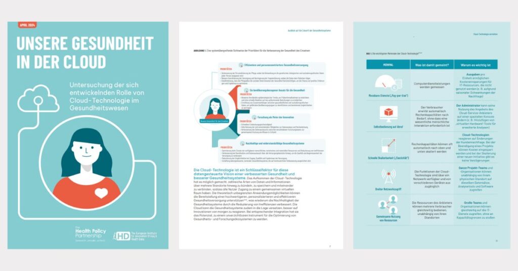 Translation into German and typesetting of the ’Our Health in the Cloud’ publication for the Health Policy Partnership. The full publication can be found here: