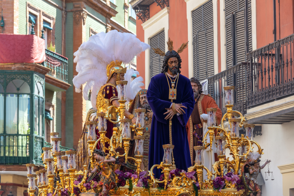 Brotherhoods and religious fraternities parade through the streets carrying large, ornate floats (pasos) that depict scenes from the Passion of Christ. Participants often wear traditional robes and pointed hoods, creating a solemn and powerful atmosphere.